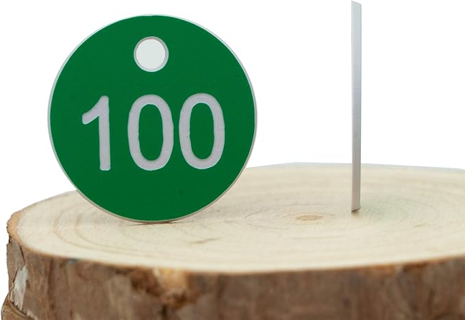 StayMax Plastic ID Number Tags Engraved Tags Key Tags Without Key Rings (1-100, Green)
