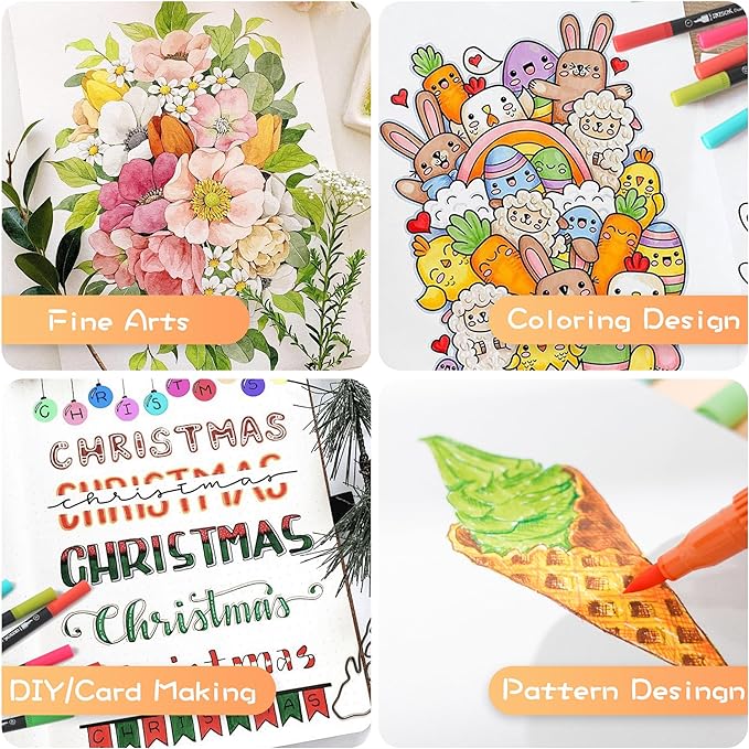 - STAY NICE AND ORGANIZED GREAT GIFT:Our Duo tip marker pens organized in the included Waterproof canvas bag container! Wonderful Gift for Birthday, Graduation, Halloween, Christmas, Thanksgiving day or anyone who loves drawing, painting, sketching, writing, journaling, brush lettering, crafting, doodling, watercolor painting, illustrations.