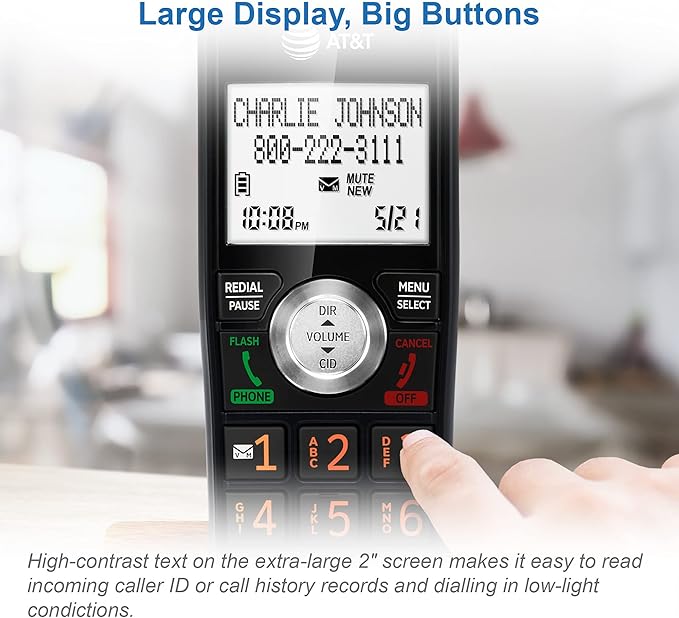 - ** 2" WHITE BACKLIT DISPLAY ** High-contrast text on the extra-large 2" screen makes it easy to read incoming caller ID or call history records. Plus, the white back lighted handset keypad allows for easy dialing in low-light conditions.