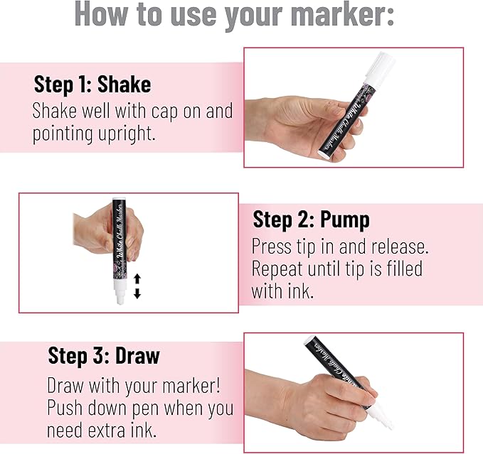 - Liquid chalk markers come in assorted sizes and can be adjusted for your needs, drawing, writing or coloring options.