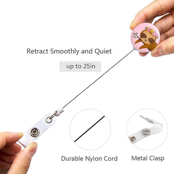 Retractable Badge Reel Clip, Badge Holder with Alligator Clip, Cute Badge Clip on ID Name Card Holders for Nurse Doctor and Office (3Pack Pretty Sloth)