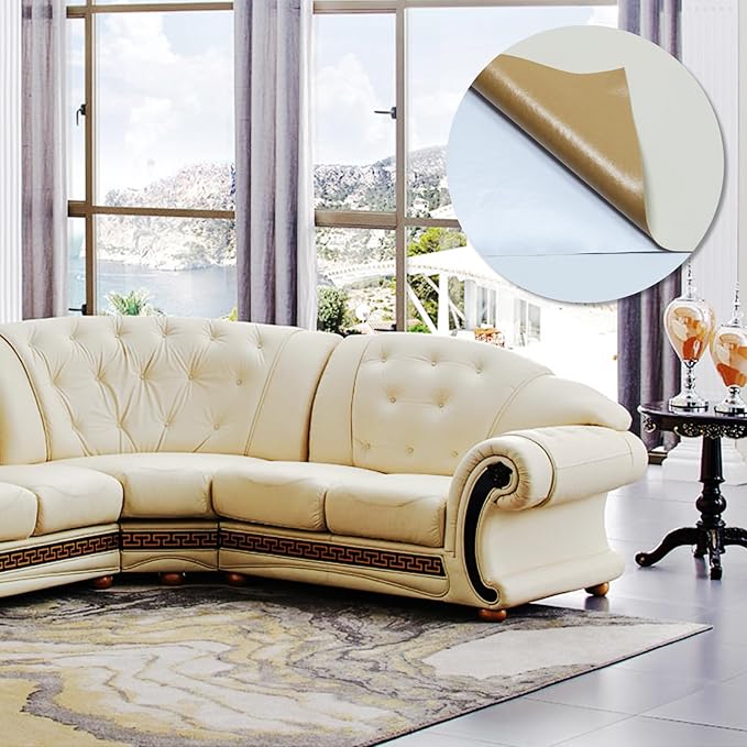 CHEIGHY Leather Repair Patch for Couches Self-Adhesive Leather Repair Tape kit for Furniture Sofa Vinyl Car Seats Couch Chairs Shoes Down Jackets (Beige, 3.9X79 inch)