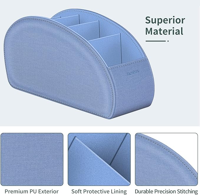 Remote Control Holder with 5 Compartments, KENOBEE Anti-slip Desktop Caddy Storage Organizer for Remote Controllers, Office Supplies, Makeup Brush, Media Accessories, Denim Blue