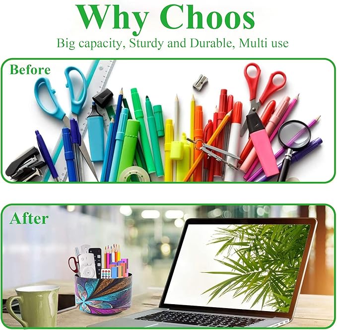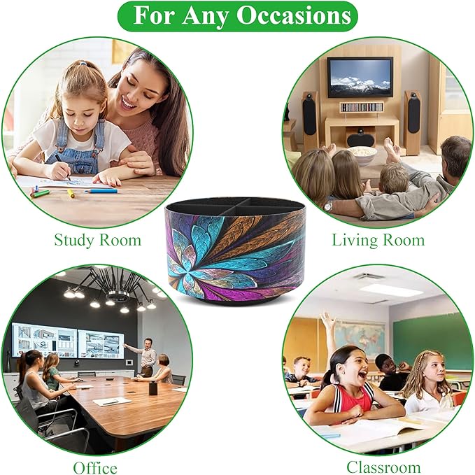 - ✎360° Revolving Design: You can freely rotate the pen holder steadily left and right,unique spinning base design allows easy access to items from any directions.The non-slip pads on the bottom keep it stay in place when rotating.