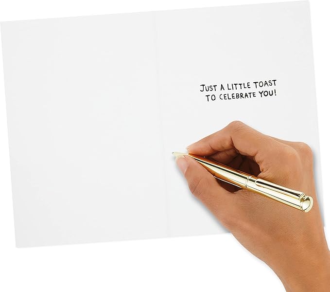 - First card features a piece of toast jumping for joy and saying "Woo-hoo!" Inside reads: "Just a little toast to celebrate you!"