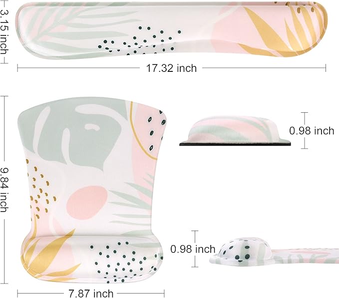 - Materials: With Comfortable Memory Foam & Breathable Material to the pads.The keyboard wrist & Mouse Wrist is made of cushioned neoprene.The fabric of the surface is super soft
