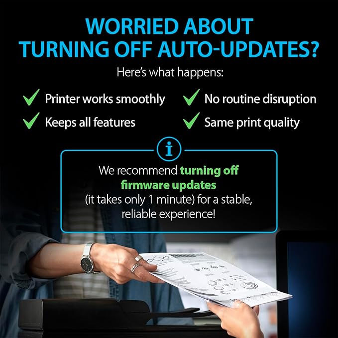 - Before Installation: Please turn off firmware updates on your printer control panel to ensure uninterrupted printing