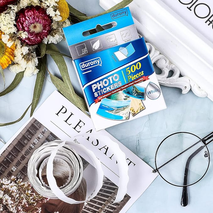 Durony 500 Pieces Photo Sticker White Double-Sided Self Adhesive Photo Tapes for Pictures DIY Photo Album Journal