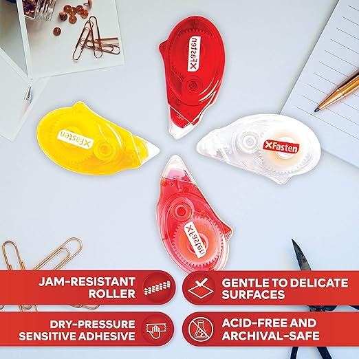 - CLEAN AND MESS-FREE APPLICATION. Unlike liquid adhesives, these double sided tape rollers do not create a mess or leave a residue. They are clean and easy to use, making them ideal for use in various environments, including schools, offices, and homes.