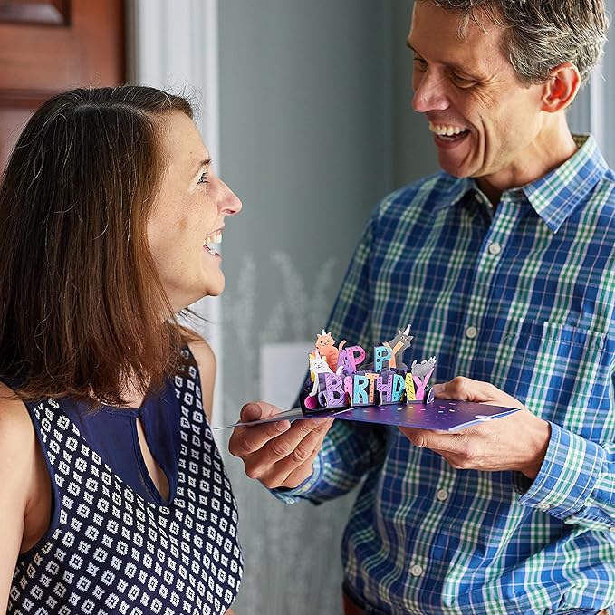 - CREATE A MAGICAL MOMENT FOR YOUR LOVED ONE with the 5" x 7" Lovepop Happy Birthday Cats Pop Up Card. Features a funny Happy Birthday design that opens in your hand.