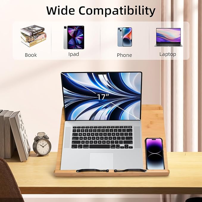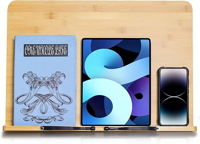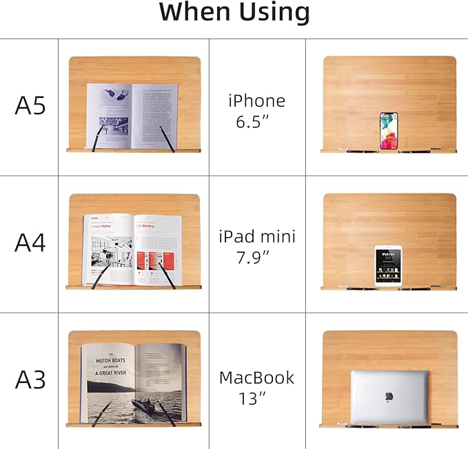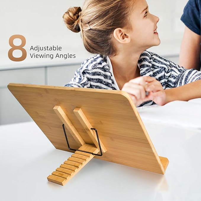 - Multi-function bamboo bookstand, Support different size and style books, Tablet, Painting Books, Cook Book, Sheet Music, Textbook, Tablature, Catalogs, etc.