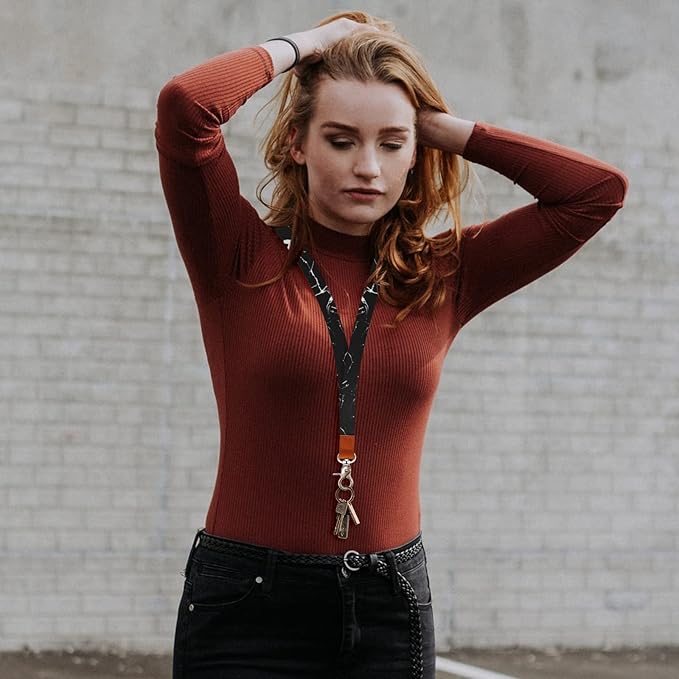 Black Marble Lanyard, Long Neck Lanyard with Metal Clasp, Sturdy Durable Women Men Id Badge Lanyard, Neck Lanyard Strap Ideal for Car Keys, Card Holder, Whistle, Keychain, Wallet