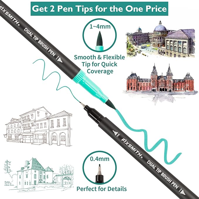 - Versatility: These colored pens are fabulous for coloring, fine art, illustrations, doodling, journaling, hand lettering, and more. Whether you want markers for simple hobby tasks or professional art pieces, the FIXSMITH brush pen delivers incredible results on both ends.