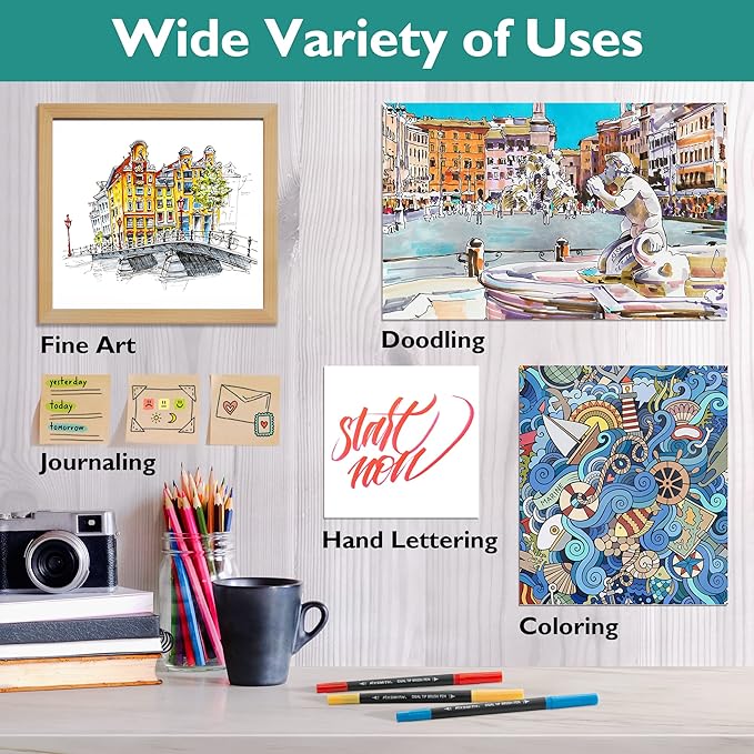 - Smooth Writing & Absolutely No Bleeding: These drawing pens use water-based pigment ink, which is very smooth and effortlessly flowing. It can provide rich vibrant colors. You can use it on almost all types of paper without worrying about bleeding or feathering.