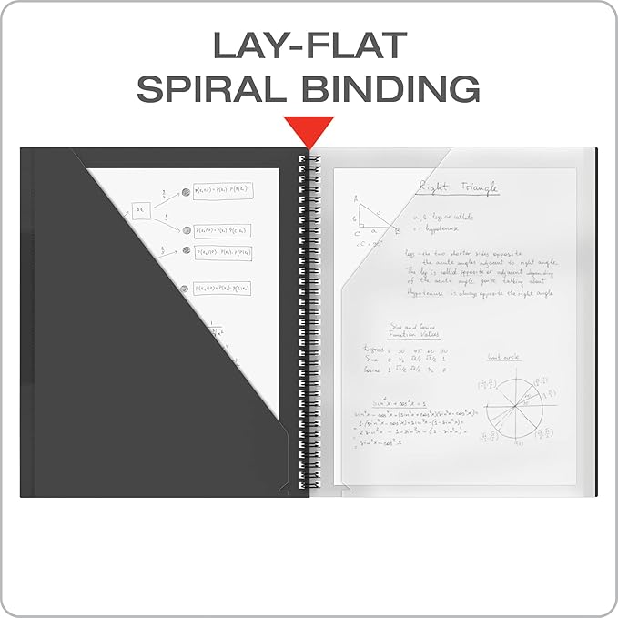 - This Oxford 10 pocket plastic folder has 8 clear pockets and 2 interior cover pockets for extra organization, easy lay-flat spiral binding and anti-tear edges to last the school year; 9" x 11", black