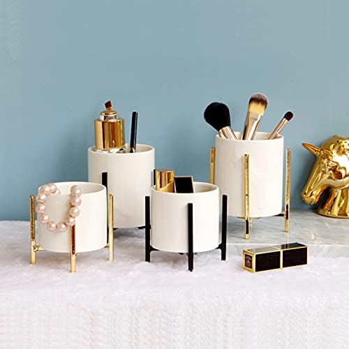 Black Pencil Cup Sturdy Metal Frame with White Ceramic Pen Holder For Desks and Kitchen Appliance holders