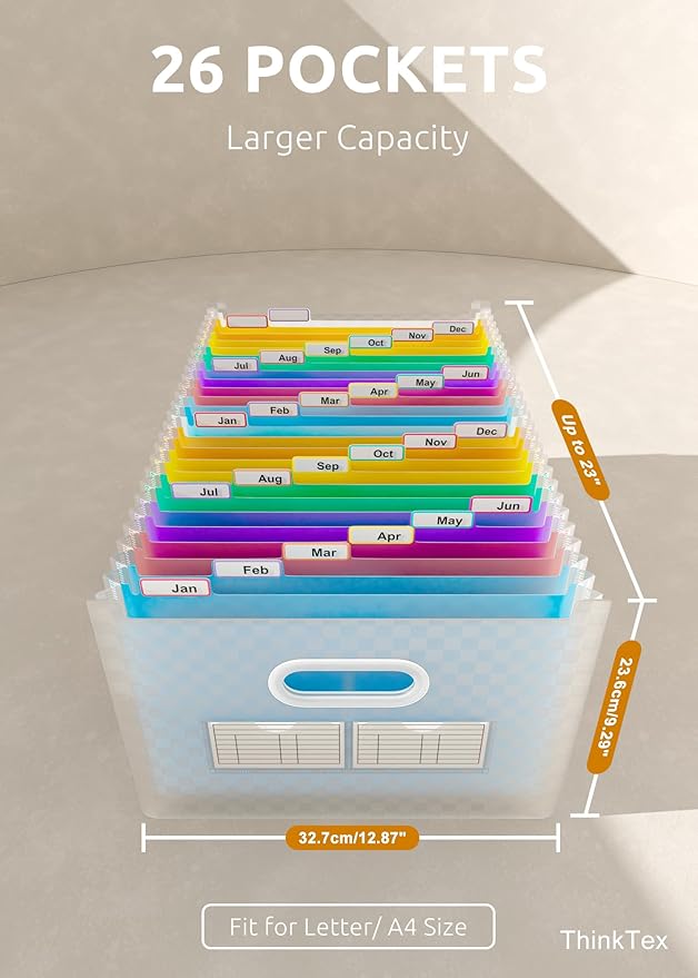 - UPRIGHT & EXPANDABLE - ThinkTex Accordion File Organizer, 26 pockets, A-Z multi-colored tabs, Open top, for letter/A4 size