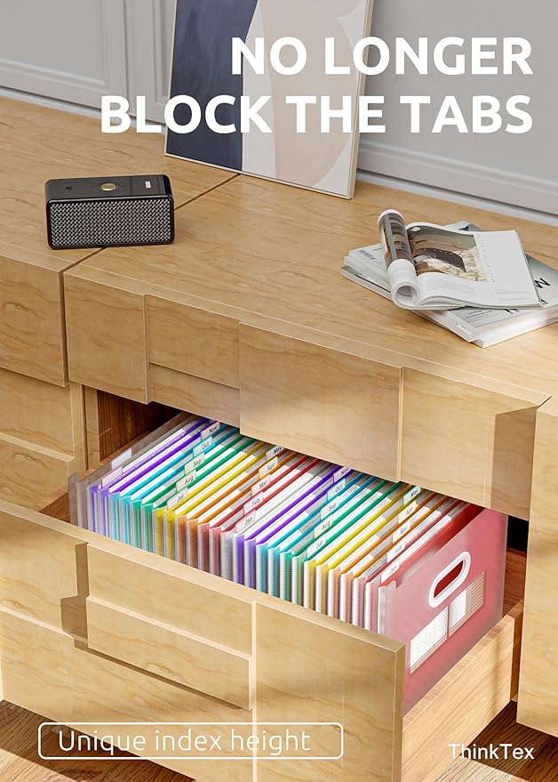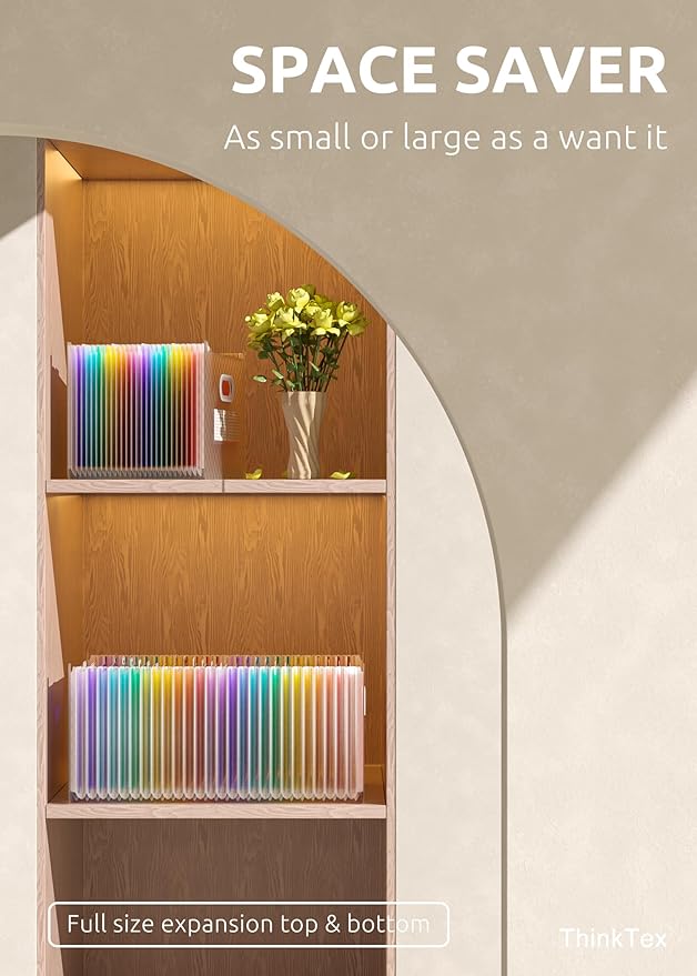 - UPRIGHT & EXPANDABLE - ThinkTex Accordion File Organizer, 26 pockets, A-Z multi-colored tabs, Open top, for letter/A4 size