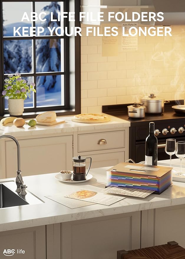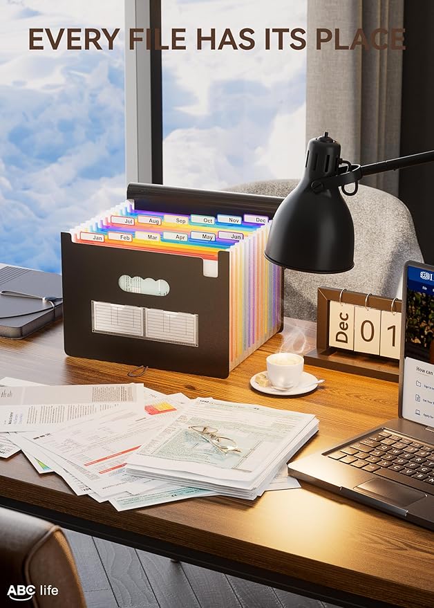 - 【12 Expanding File Folder】ABC life pockets accordian file organizer suitable for filing tax and storing important family documents. Product size is 13 "x 9.4"x 14", top and bottom are both expandable, For letter/A4 size files.