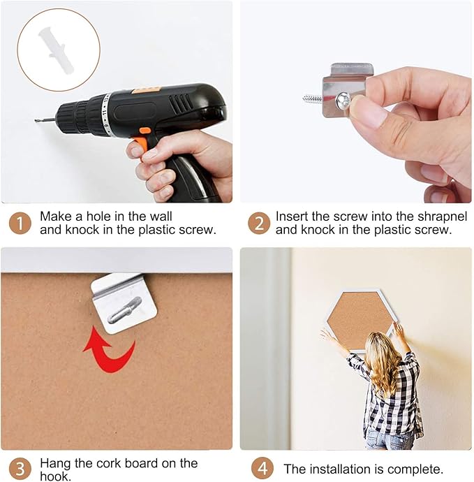 Cork Bulletin Board Hexagon White, Small Framed Corkboard Tiles for Wall, Thick Decorative Display Boards for Home Office Decor, School Message Board (4 Pack)
