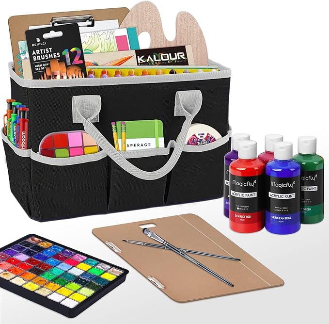 Godery Desktop Tote and Organizer, Teacher Helper Bag for Arts, Books, Stationery, Office Desk Organization, Make-up Storage with Handles for Travel (BLACK-2)