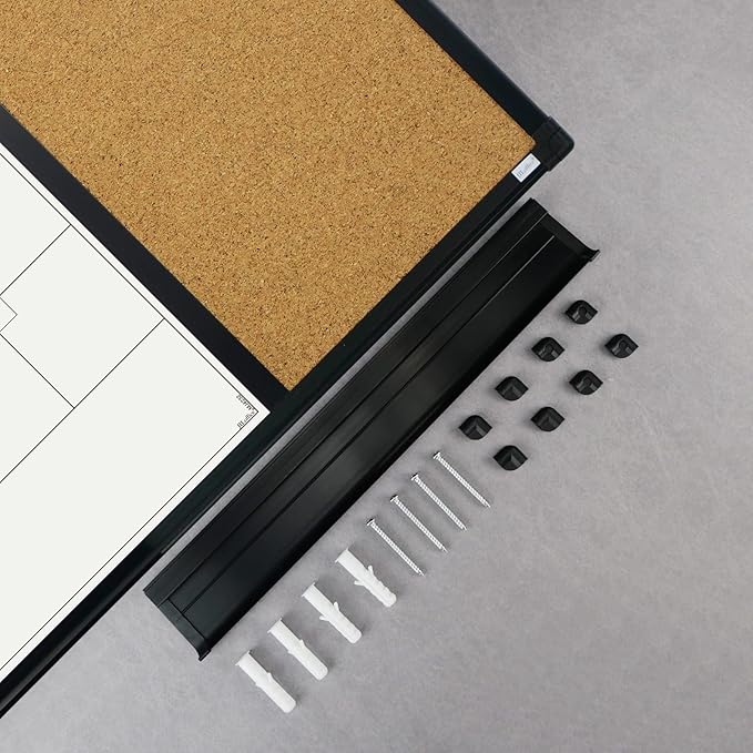 - ELEGANT BLACK ALUMINUM FRAME: Anti-Scratch satin black aluminum frame & detachable marker tray, Round nylon corners, Sturdy whiteboard structure perfect organizer for school home and office.