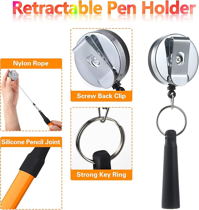 - Retractable Pen Holder: this pencil holder is designed with a silicone pen cover, just wear the metal clip on your apron or belt loop, and insert your marker into the rubber joint; The pencil holder is connected with 24 inch retractable cord, convenient to mark in the messy woodworking workplace and improve your work efficiency