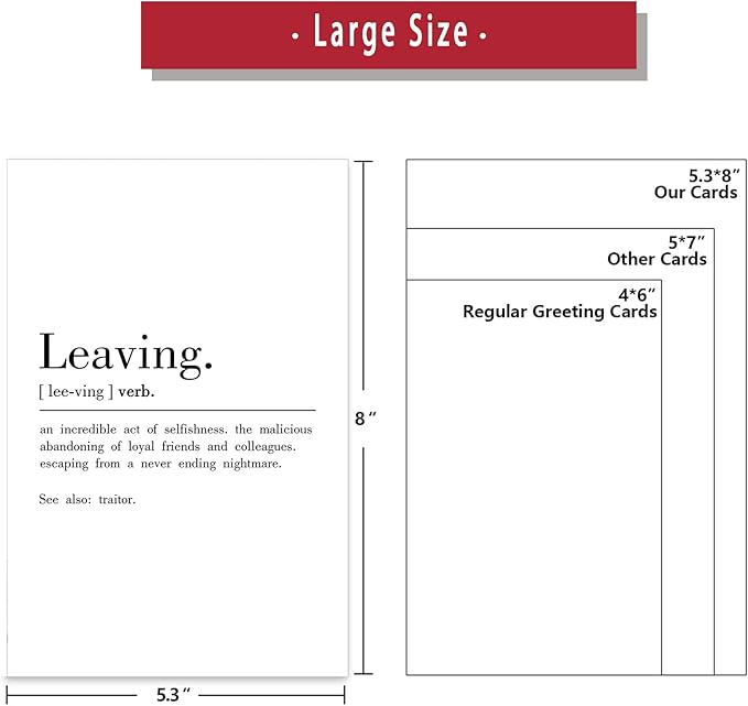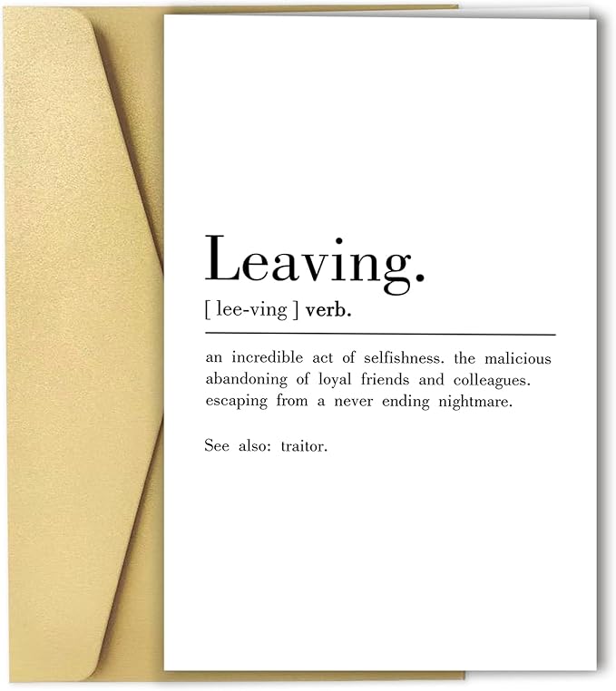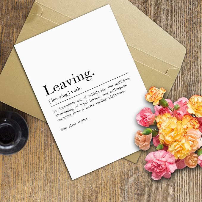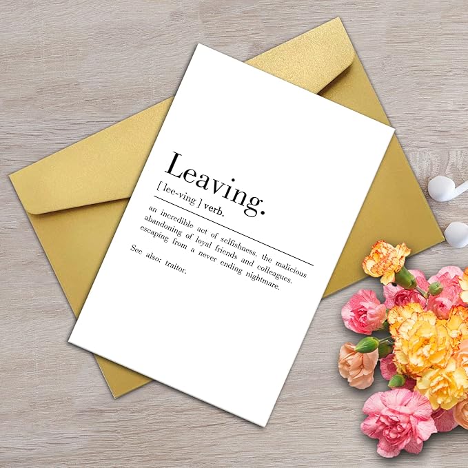 - Funny leaving Definition Greeting Card: this card printed on hilarious words to give your work besite a big smile.