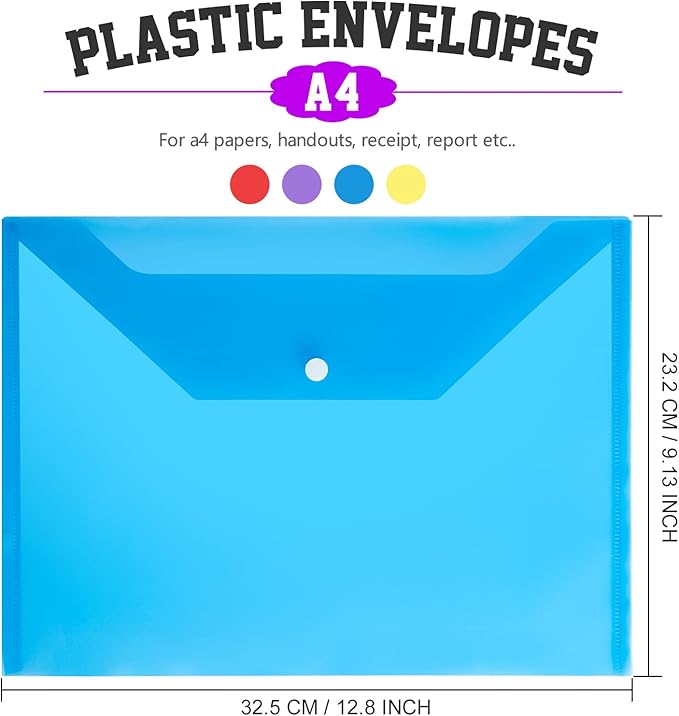 - Convenient Snap Closure: Each plastic folder has a snap closure, make it pretty easy to open and close the envelope, and help you get what you need quickly. Note: Any problems, please feel free to let us know, we’ll be at your service with heart and soul.