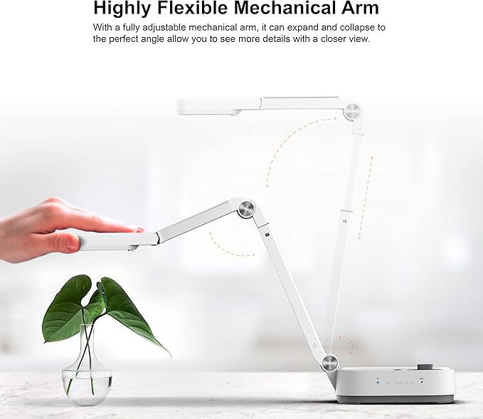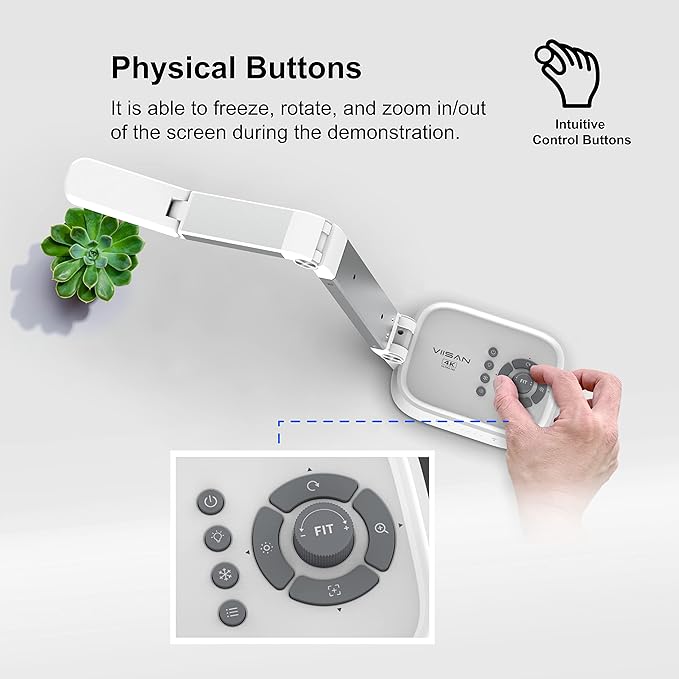 - [Flexible Mechanical Arm & Physical Buttons] The VZ4 is equipped with a fully adjustable mechanical arm, it can expand and collapse to the perfect angle to allow you to see more details with a closer view. And, It also integrates physical buttons for a more convenient user experience, which allows you to freeze, rotate, and zoom in/out of the screen during the demonstration. Can be 30X Digital Zoom.