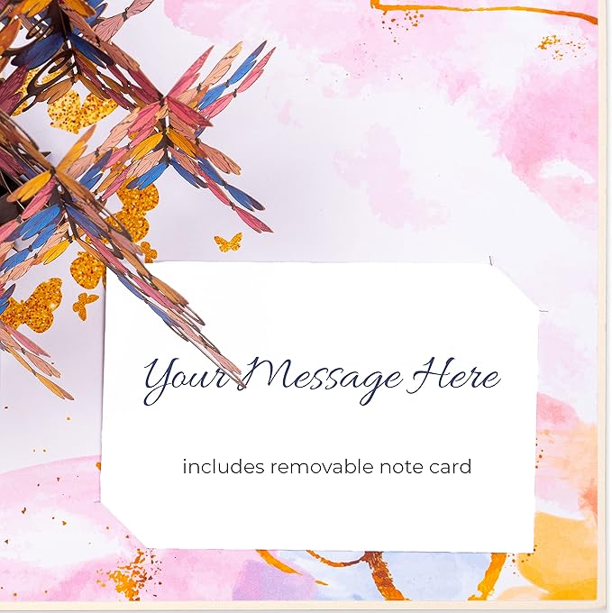 Paper Love Butterfly Tree 3D Pop Up Card, Gift for Birthday, Wedding, Anniversary, Mothers Day, Thank You, Get Well, All Occasion or Just Because - 5" x 7" Cover - Includes Envelope and Note Tag