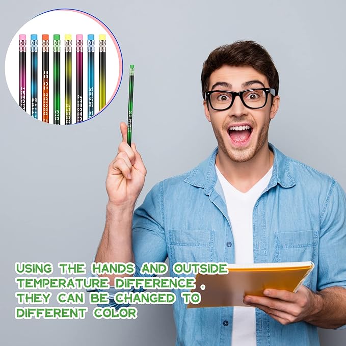 - Color Changing: motivational pencils use color changing technology, using the temperature difference between the human body and the outside temperature, by holding the pencil in your hand causing 2 sections of color change, you can also rub your hand to get hot and then change color; If the temperature difference is large enough, color change effect is better, and without using them will not change color; Warm tip: the color change effect is more obvious when the temperature is below 15 degrees