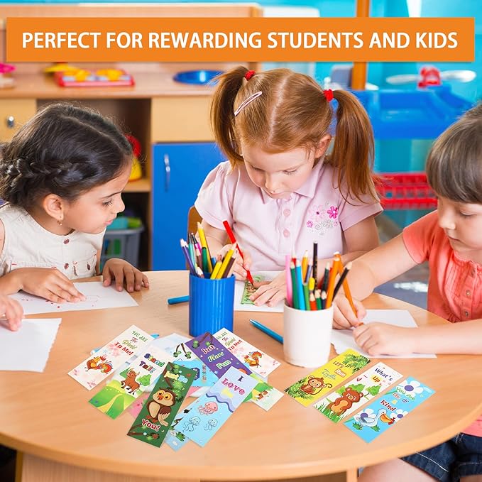 120 Pieces Bookmarks for Kids Set Book Marks Gifts for Kids Inspirational Motivational Paper Bookmark Pack for Book Lovers Adults Teacher Women Funny Reading Gift (Cartoon Animal)