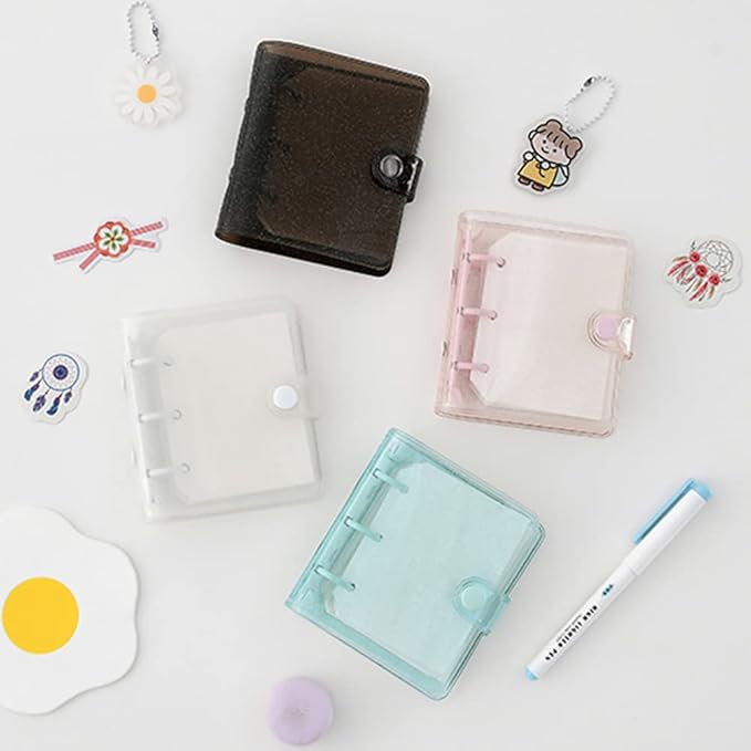 3 Ring Glitter Binder Cover Clear PVC Notebook Cover Protector Loose Leaf Folder Binder Mini Transparent Binder Pockets with Paper Pink