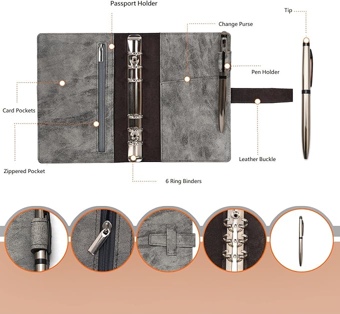 - SMART & REFILLABLE -- With the long-lasting and unique leather hand make cover, each Leather cover has a high quality standard 6 rings A5 or A6 Binder, it is easy to remove and refill new paper once your journal is full, enjoy your writing without distractions.
