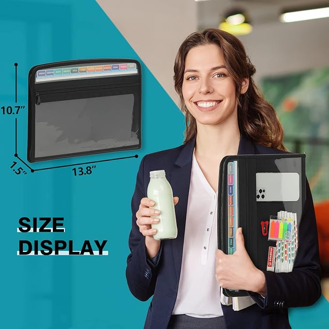 - FRONT ZIPPER CLEAR POCKET: A roomy clear pocket with zipper closure added on the front, designed for taking more school office supplies like pens, eraser, calculator, or receipts, invoices papers storage with this expandable file folder organizer
