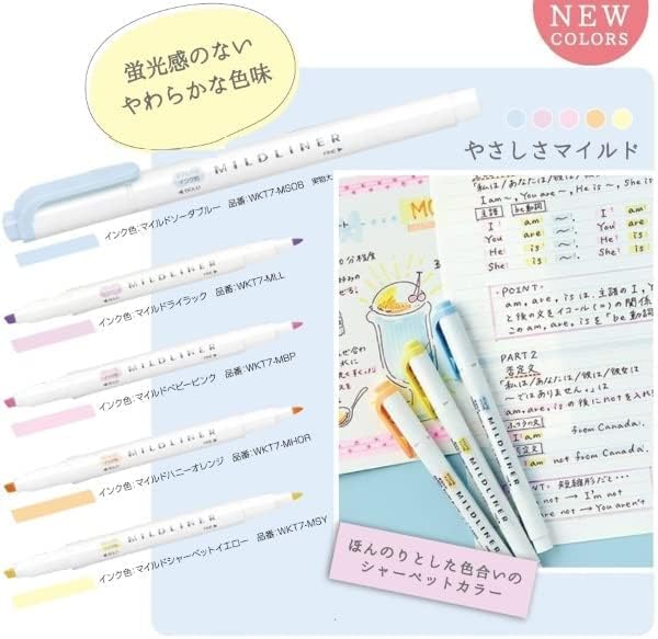 Zebra Line Marker, Thick & Fine Water Based Pigment, Mildliner, 5 Colors, WKT7-5C-YC