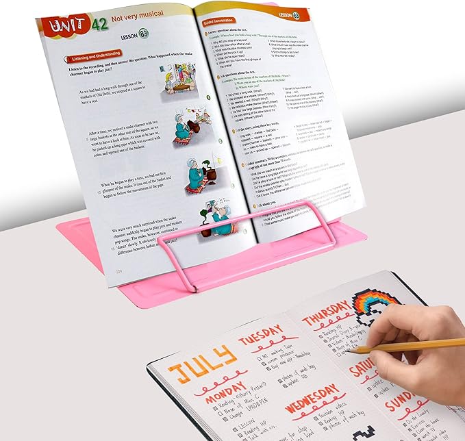 - 【Book Holder for Reading】The book holder is designed for keeping your hands-free when we are reading cookbook magazine painting papers documents text books sheet music catalogs notetablet or iPad. Support thicker books in school library dorm office or any other desktop.