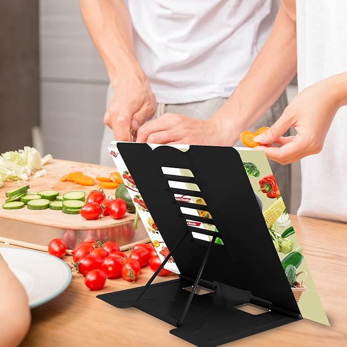 - 【Adjustable Book Holder】 Book Holder have six reading positions,The multiple notches on the backrest can adjust its height and angle.Adjust the height between the eyes and reading books or documents well