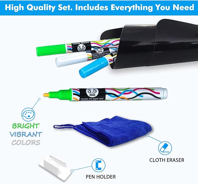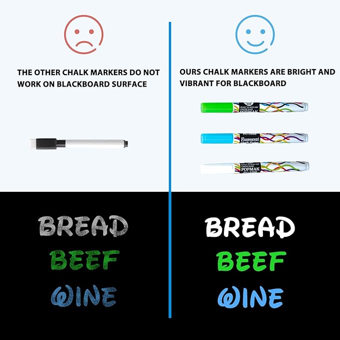 - Bright Chalk Markers - Our magnetic fridge dry erase board bundle includes 3 different colors of chalk markers. The colors are super bright and look great up against the black magnet board sheet, which is easier to read, PLEASE Follow The Instruction for Chalk Markers