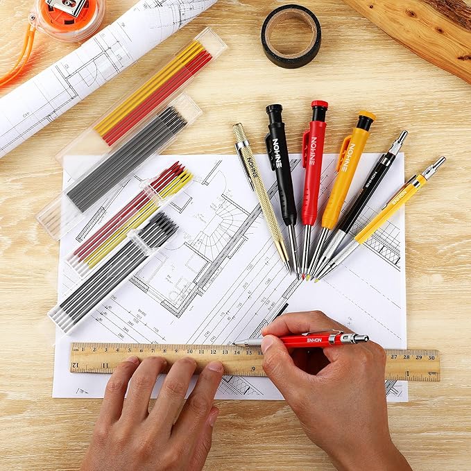 - 【Built in Carpenter Pencil Sharpener】every of the mechanical carpenter pencil comes with a built in sharpener on top of the mechanical drawing pencils for your convenience