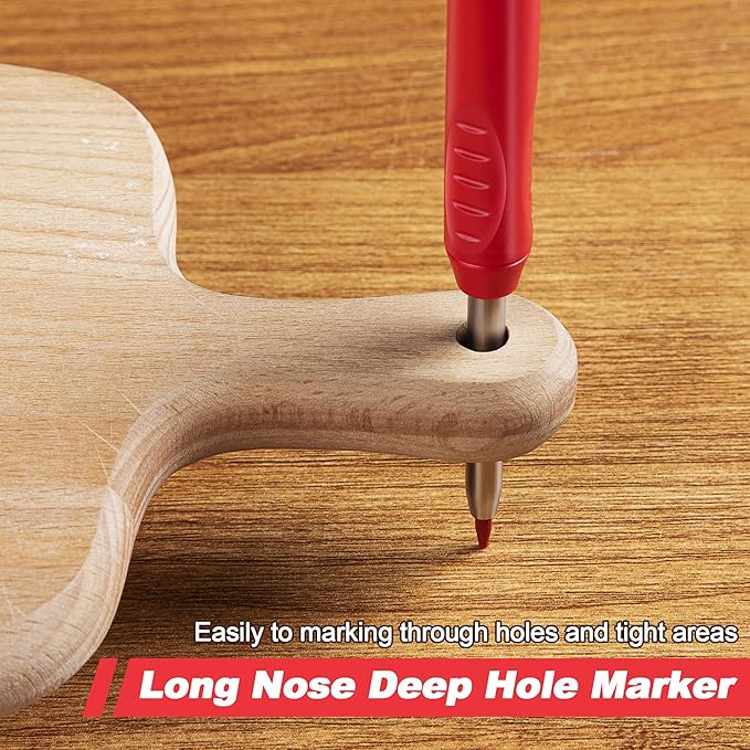 - 【Deep Hole Marker】the carpenters pencil has a 45 mm long nib design, which can reach tight areas that other woodworking pens can't; Refills of 3 colors can distinguish marks with different meanings and can mark on dark surfaces