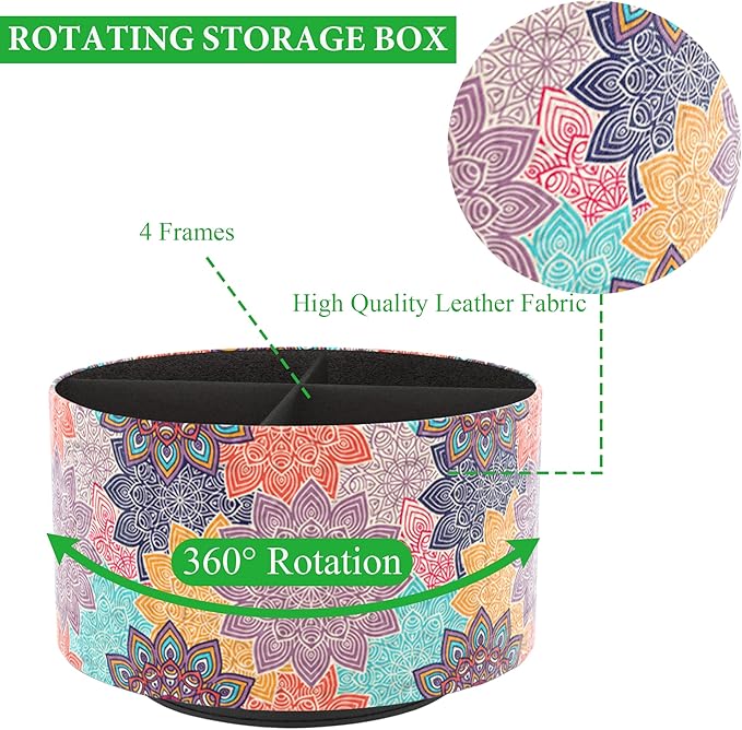 Hennaja Round Leather Art Supply Organizer,Remote Control Holder,360 Degree Rotating,Multi-Functional Pencil Holder,4 Compartments Desktop Stationary Organizer(1-Colorful Flower)