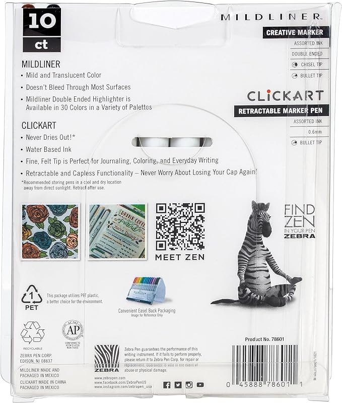- This 10-count pack includes 8 Mildliner Highlighters and 2 ClickArt Markers that add a little something extra to handmade cards, art presentations and bullet journals
