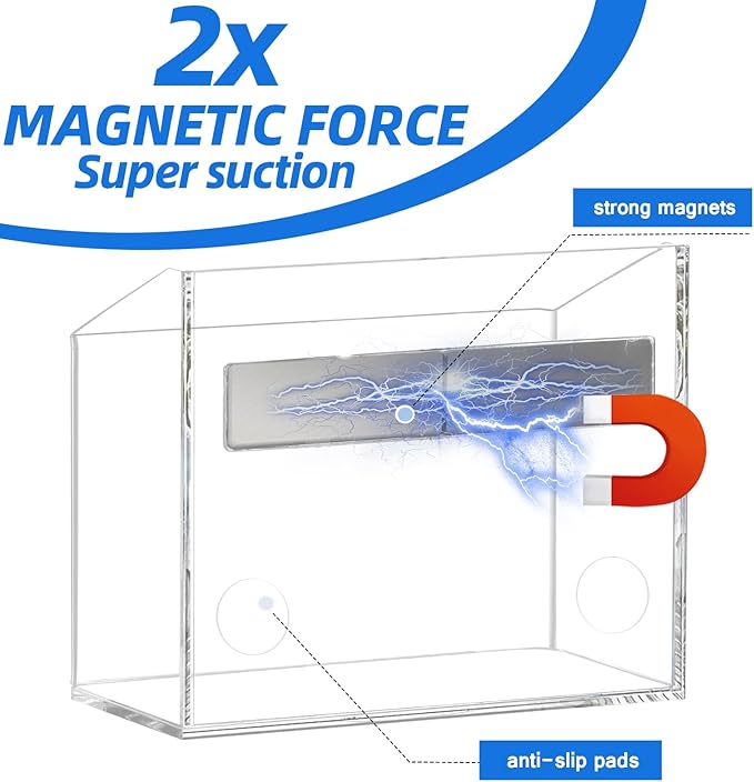 Simetufy Whiteboard Marker Holder, Strong Magnetic Dry Erase Marker Holder for Marker, Pens, Pencils, etc, Non-slip Acrylic Magnetic Pen Holder for Fridge, Lockers, Whiteboards - Transparent, 1 Pack