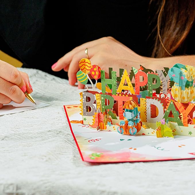 - EXQUISITE DESIGN - This lovely Happy Birthday Dinosaur popup card features an exciting unique 3D design, featuring a celebratory Birthday Party theme. A memorable gift that can be kept as a Keepsake.
