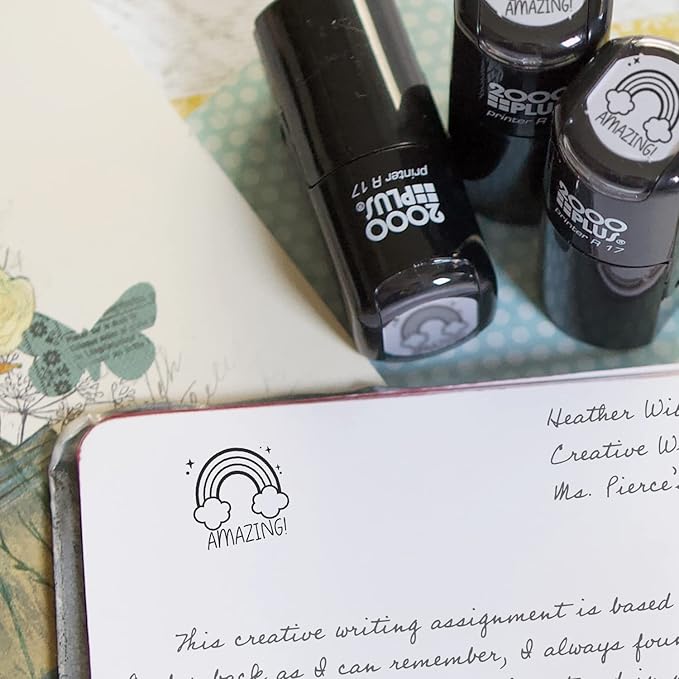 Amazing Magical Rainbow Stamp / 2000 Plus Self Inking School Teacher Reward Stamper / 9/16" Small Black Ink Homework Worksheet Grading Stamp/Made in USA