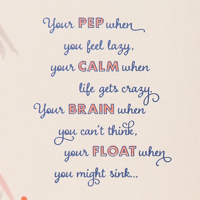 - Inside reads: "Your pep when you feel lazy, your calm when life gets crazy. Your brain when you can't think, your float when you might sink . . . So many things to love, it's true, I know because that friend is you. Happy birthday."