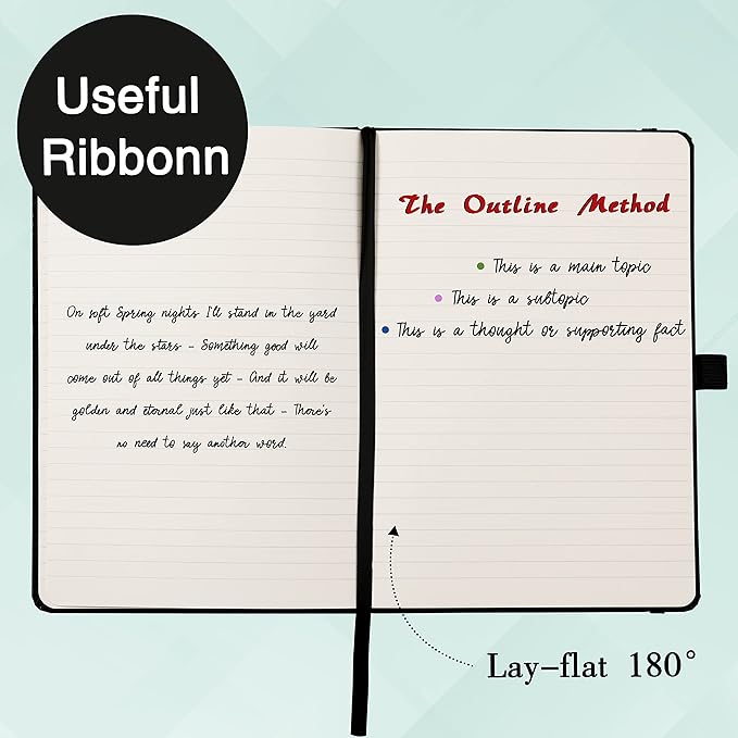 - LAY-FLAT 180° DESIGN - This classic lined notebook is designed to lay flat, which makes you easy to write and take notes efficiently. And firm thread-bound ensures pages don't get peeled away from the cover. This notebook provide you a high quality writing experience.