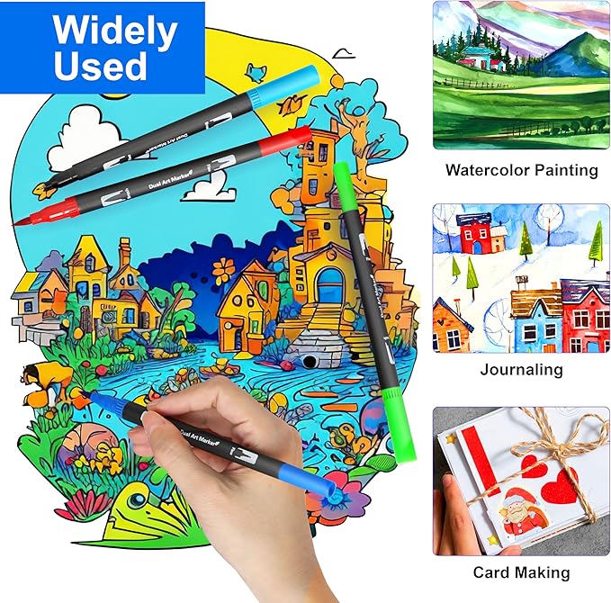 - 🎨24 Colored Markers: Dual tip markers are made with 24 commonly used colors to ensure that there will be no repetition in every application, thus achieving outstanding color effects. During your creative process, these pens will show their full charm, powerfully stimulating your imagination and creativity, enabling you to create even more wonderful works.
